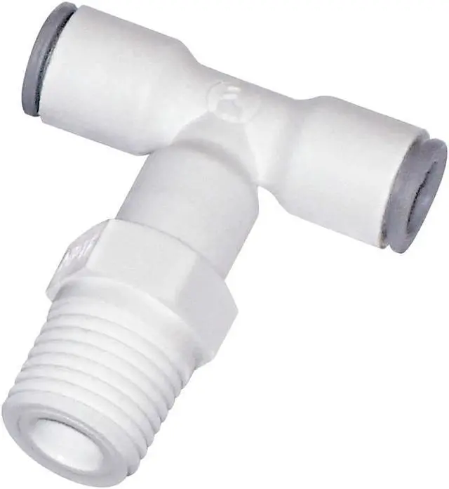 California Proposition 65: This product contains a chemical known to the State of California to cause birth defects or other reproductive harm. Push-Fit Tee Fitting, Application Carbon Dioxide, Potable Water, Color White, Fitting Side A Connection Type NPTF, Fitting Side B Connection Type Push-to-Connect, Fitting Side C Connection Type Push-to-Connect, Material Grade Not Applicable, Fitting Side A Pipe Size 3/8 in, Includes Pre-Applied Thread Sealant Pre-Applied Thread Sealant Not Included, Fitting Side B Tube Outer Diameter 3/8 in, Fitting Side C Tube Outer Diameter 3/8 in, Fitting Material Nylon, Maximum Operating Pressure 230 psi. This item has been restricted from sale in the following state (s): []
