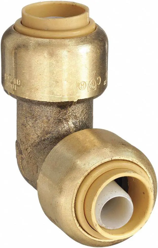 California Proposition 65: This product contains a chemical known to the State of California to cause birth defects or other reproductive harm. Push-Fit Elbow Fitting, Application Potable Water, Fitting Side A Connection Type Push-to-Connect, Fitting Side B Connection Type Push-to-Connect, Fitting Side A Tube Outer Diameter 3/8 in, Fitting Side B Tube Outer Diameter 3/8 in, Fitting Material Brass, Color Brass, Includes Pre-Applied Thread Sealant Pre-Applied Thread Sealant Not Included, Maximum Operating Pressure 200 psi, Maximum Operating Temperature 200 Degrees F, Overall Length 1 9/32 in, Specific Fitting Shape 90 Degrees Elbow. This item has been restricted from sale in the following state (s): []