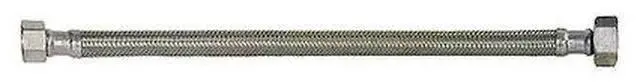 Faucet Connector, Hose Inside Dia. 5/16 in, Hose Length 12 in, Hose Tube Material PVC, Hose Cover Material Stainless Steel, Max. Working Pressure @ 70 F 250 psi, Temp. Range 40 Degrees to 180 Degrees F, Standards IAPMO, NSF, Hose Fitting A Material Brass, Hose Fitting B Material Brass, Hose Fitting A Type F Compression, Hose Fitting B Type FIP, Hose Fitting A Size 1/2 in, Hose Fitting B Size 1/2 in, Hose Configuration Bulk Hose, For Use With Faucet, Application Lavatory and Kitchen Faucets
