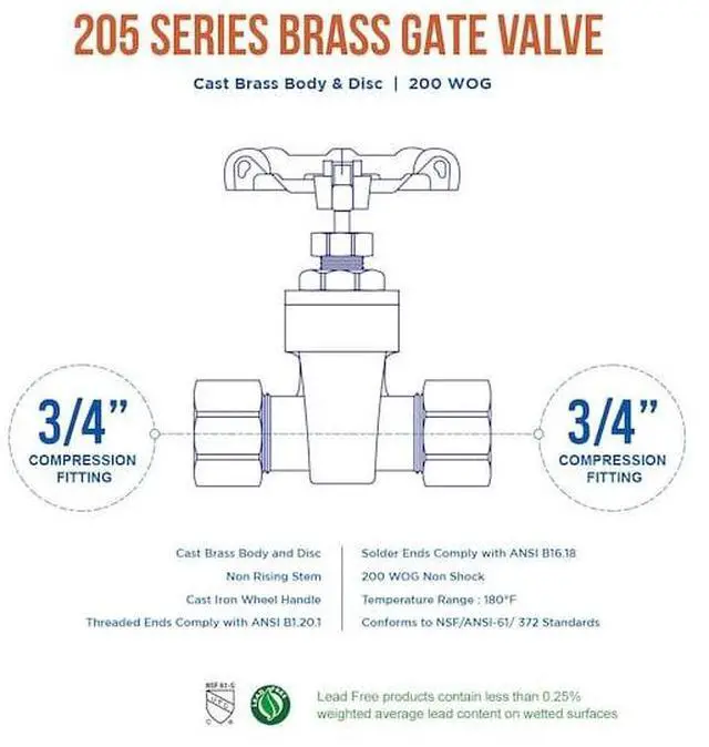 California Proposition 65: This product contains a chemical known to the State of California to cause birth defects or other reproductive harm. This Everflow Gate Valve is the ideal choice for shutoff control in your piping systems. It features a heavy duty rust resistant cast brass construction, cast iron wheel handle, secure connections, and a non-rising stem. Manufactured with the highest quality materials and workmanship, it will serve your plumbing needs faithfully.