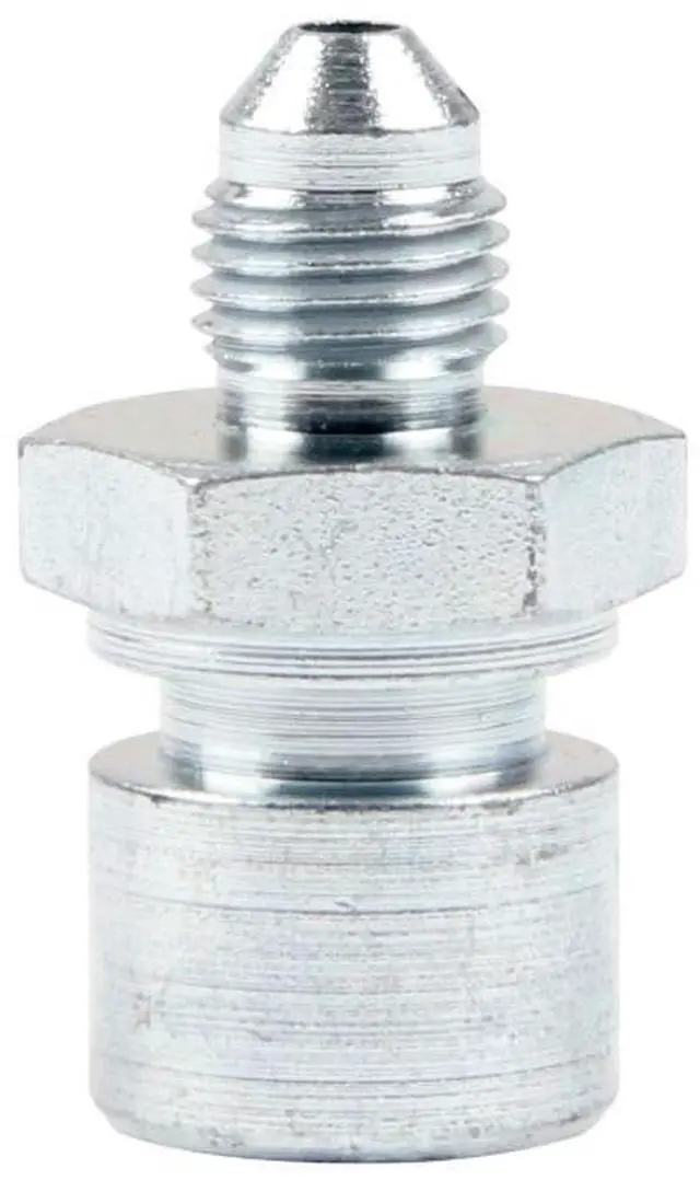 Steel adapter fittings provide a bulkhead style connection to AN lines that can be mounted directly to the chassis by using tabs or brackets and retainer clips. Fittings fit in a 5/8" hole and are sold in a pack of 50.