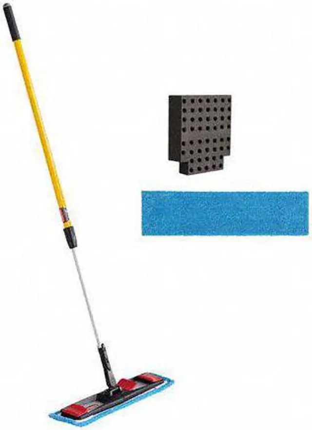 Rubbermaid Commercial Adaptable Flat Mop Kit, 19.5 x 5.5 Blue Microfiber Head, 48" to 72" Yellow Aluminum Handle
