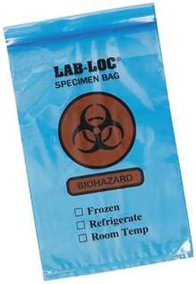 Specimen Transfer Bag, Thickness 2 mil, Color Blue, Material LDPE, Overall Height 9 in, Product Type Dual Pouch Specimen Bag, Overall Width 6 in, Autoclavable No, Sterile/Non-Sterile Non-Sterile, Legend Biohazard, Closure Type Zipper, Strength Rating Super Heavy, Bags per Roll/Pack 1, 000, Standards FDA, Package Quantity 1000. This item has been restricted from sale in the following state (s): []