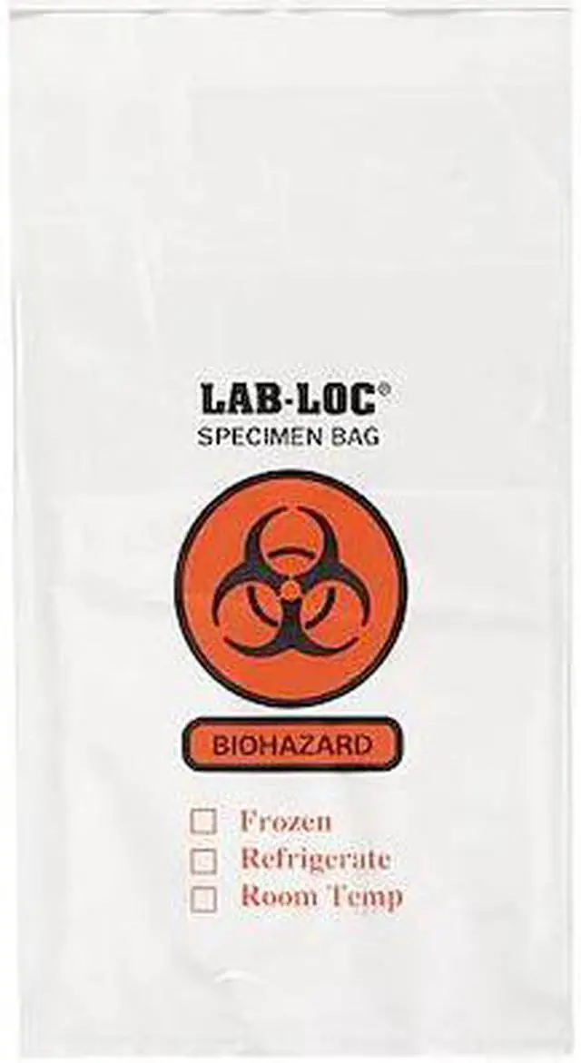 Specimen Transfer Bag, Thickness 2 mil, Material Low Density Polyethylene, Color Clear, Legend Biohazard Symbol, Height 10 In., Width 6 In., Seal Flat, Strength Rating Super Heavy, Bags per Roll/Pack 1000, Package Quantity 1000. This item has been restricted from sale in the following state(s): []