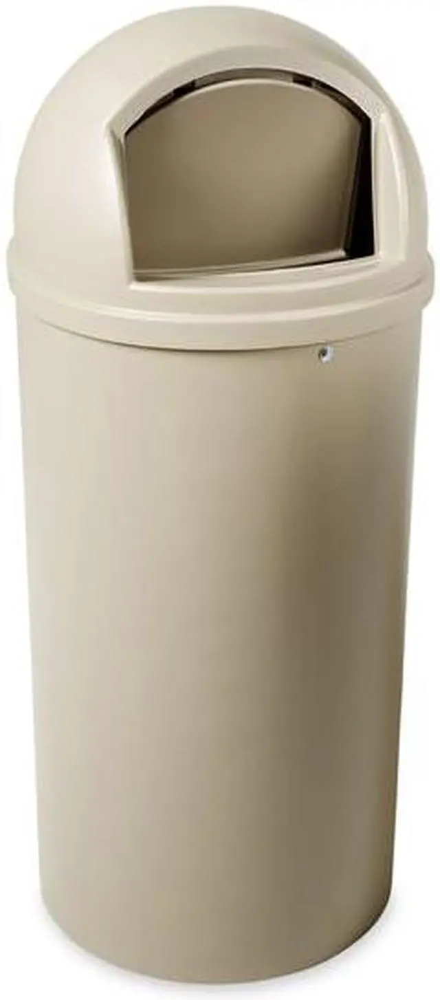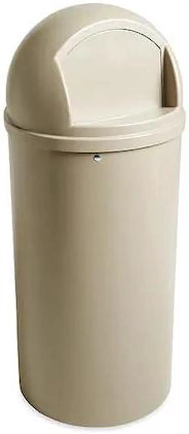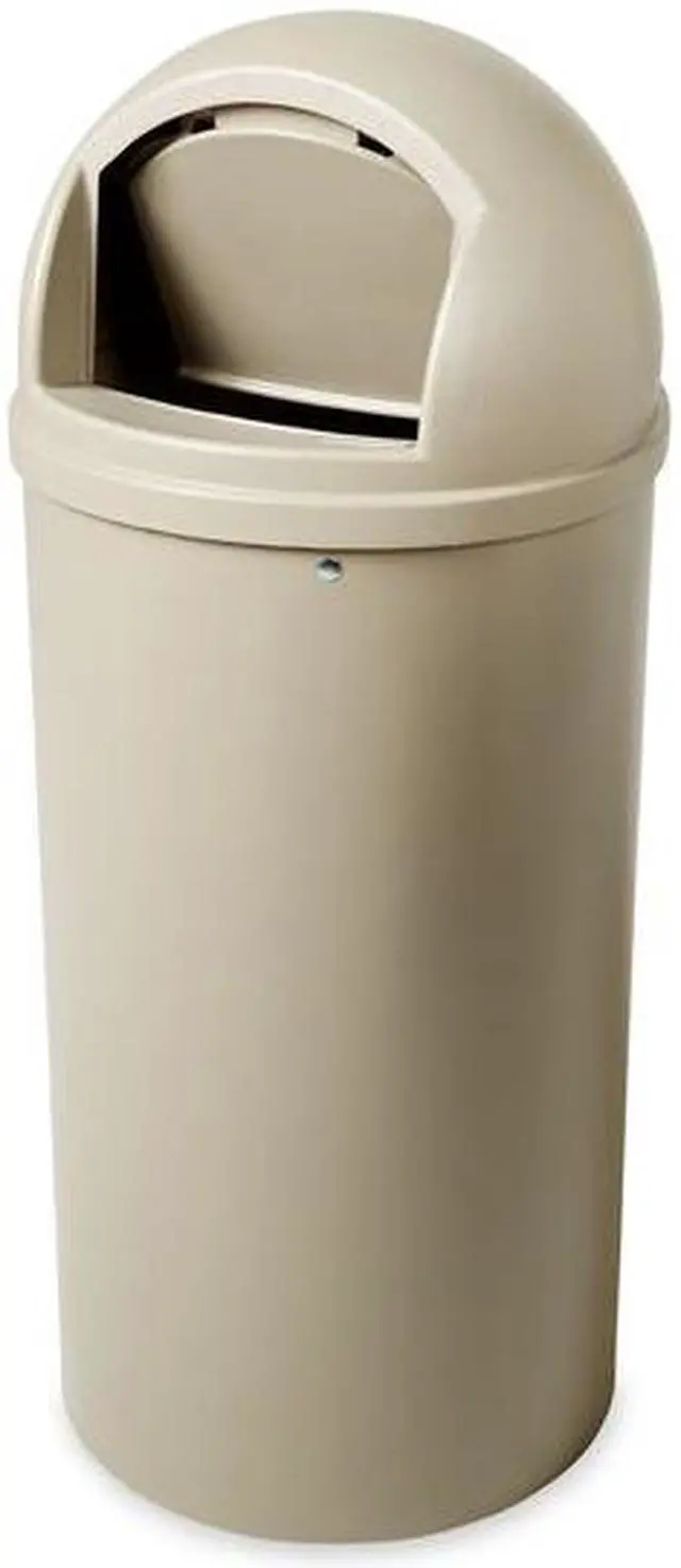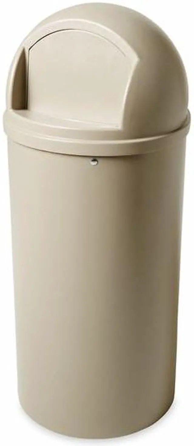 Trash Can, Round, Dome with Push Door, 25 gal, Tan, Height 42 in, Width/Diameter 18 in, Depth Not Applicable, Plastic, Plastic, Textured, Indoor, Stationary, Lid Included, Hinged, None, Free-Standing. This item has been restricted from sale in the following state (s): []