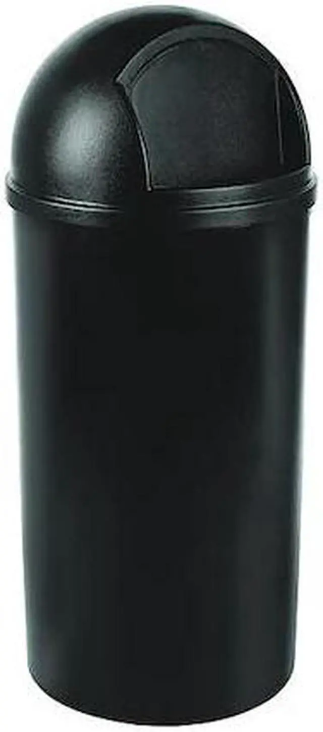 Trash Can, Round, Dome with Push Door, 25 gal, Black, Height 42 in, Width/Diameter 18 in, Depth Not Applicable, Plastic, Plastic, Textured, Indoor, Stationary, Lid Included, Hinged, None, Free-Standing. This item has been restricted from sale in the following state (s): []