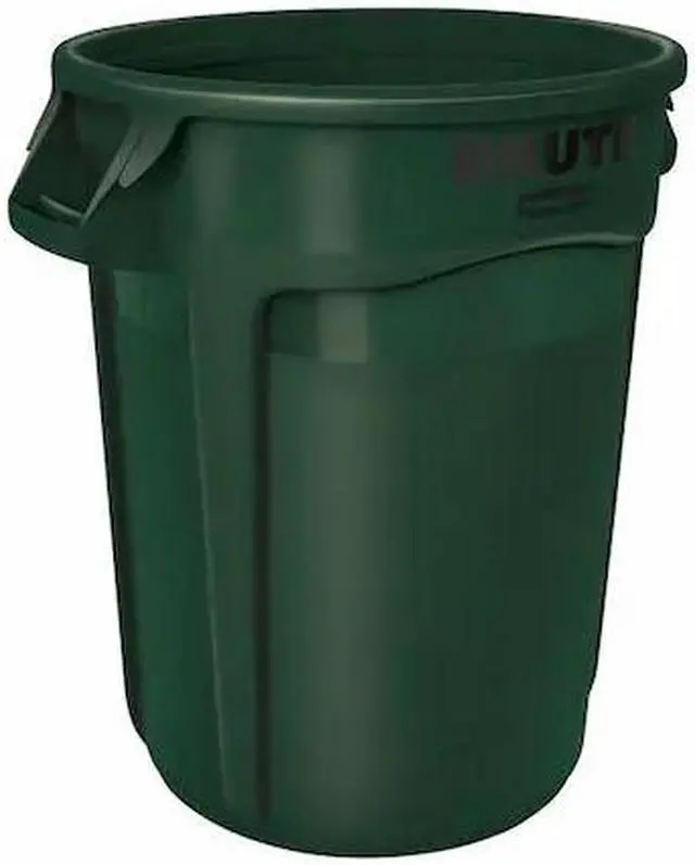 Trash Can, Round, Open, 55 gal, Green, Height 33 in, Width/Diameter 26 1/2 in, Depth Not Applicable, Plastic, Plastic, UV Protectant, Indoor/Outdoor, Stationary, No Lid, Snap Fit, None, Free-Standing. This item has been restricted from sale in the following state (s): []
