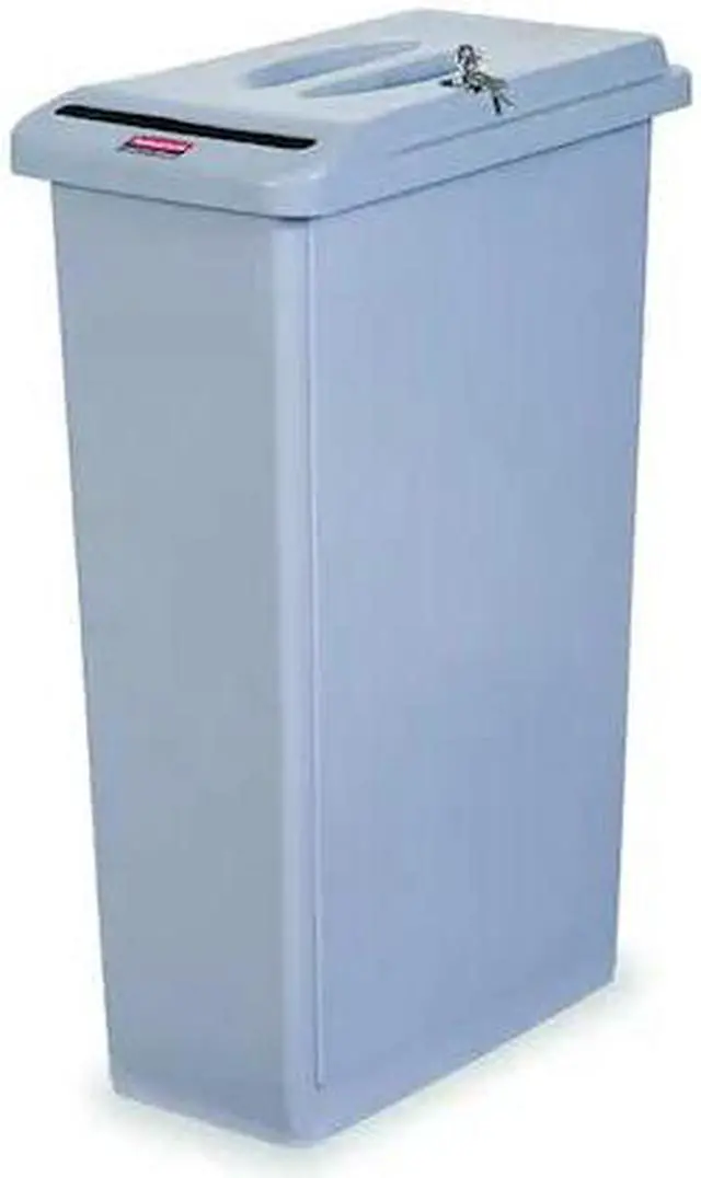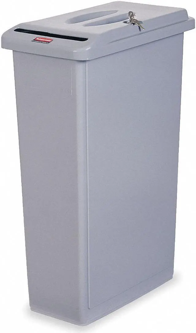 Confidential Waste Container, Rectangular, Flat, 23 gal, Gray, Height 29 7/8 in, Width/Diameter 10 5/8 in, Depth 20 3/4 in, Plastic, Plastic, Textured, Indoor, Stationary, Lid Included, Hinged, None, Free-Standing. This item has been restricted from sale in the following state (s): []