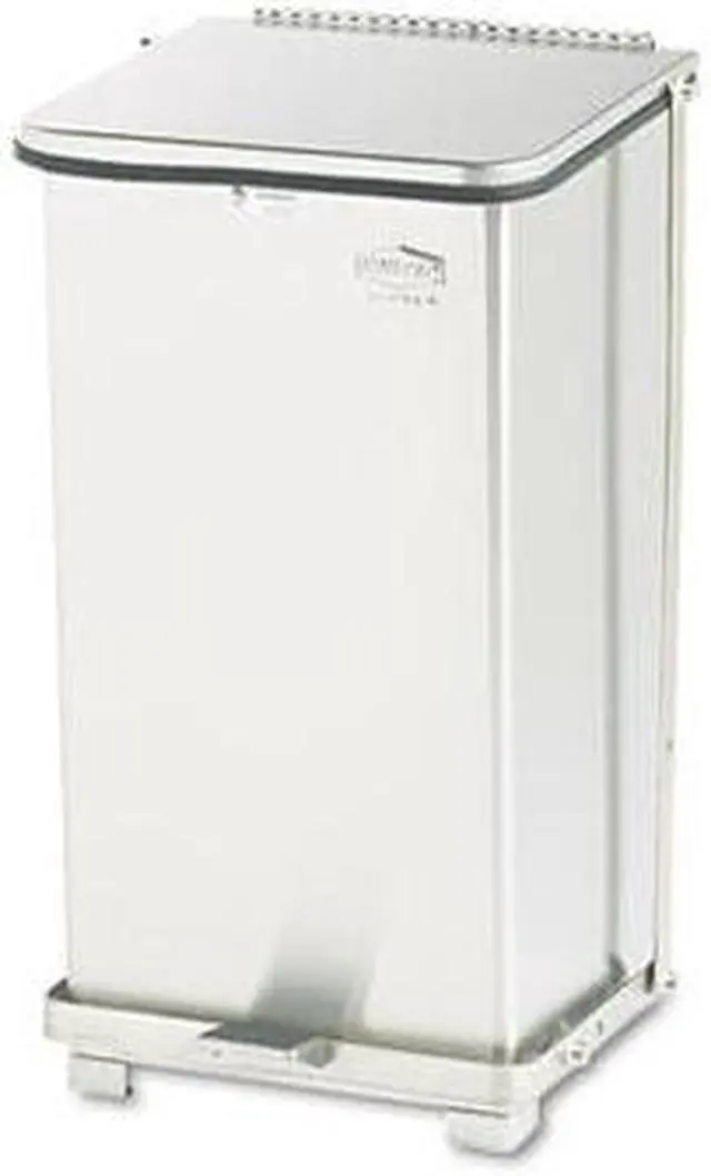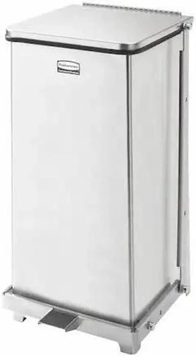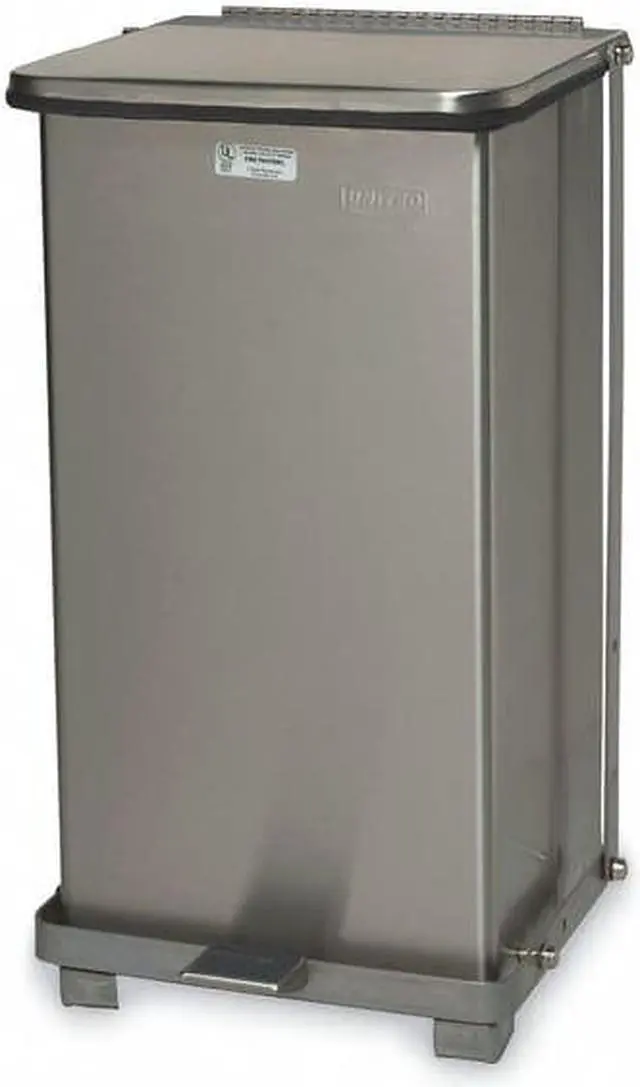 Step Can, Square, Flat, 12 gal., Silver, Height 23 In., Width/Diameter 14-1/4 In., Depth 13-1/2 In., Metal, Stainless Steel, Smooth, Stationary, Lid Included, Hinged, Front Foot Pedal, Free-Standing. This item has been restricted from sale in the following state (s): []