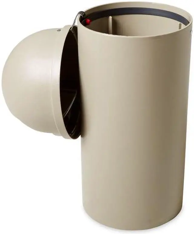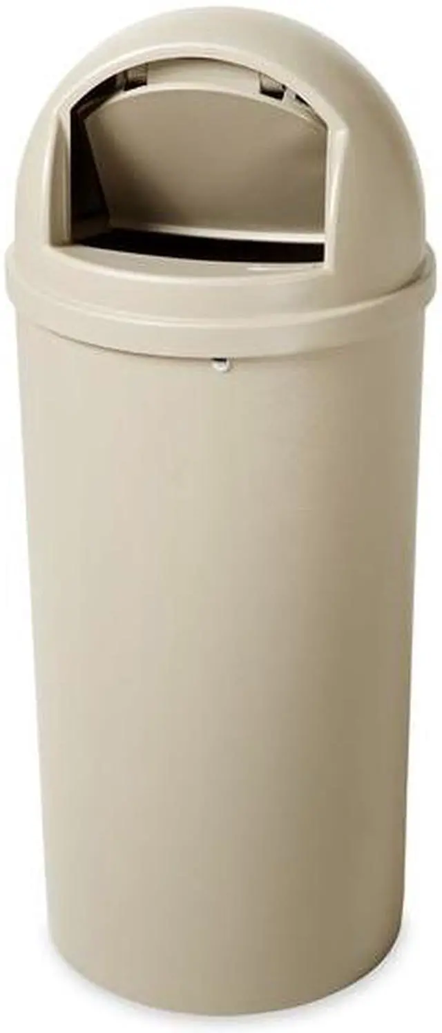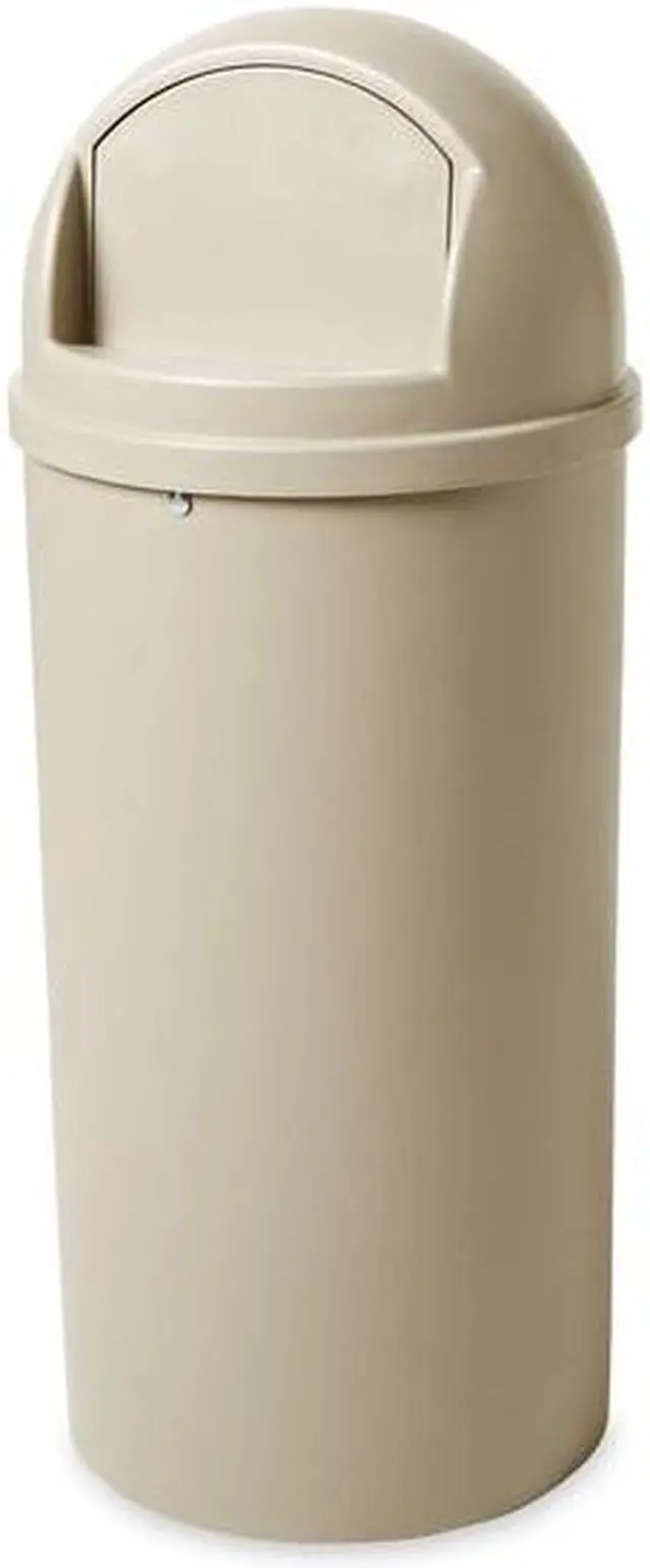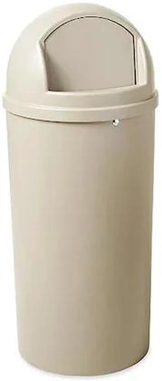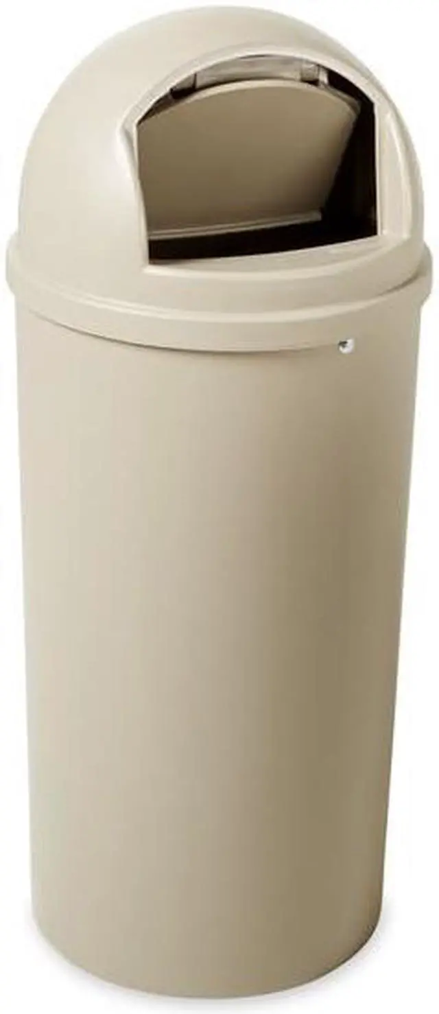 Trash Can, Round, Dome with Push Door, 15 gal, Beige, Height 36 1/2 in, Width/Diameter 15 1/4 in, Plastic, Plastic, Textured, Stationary, Lid Included, Hinged, None, Free-Standing. This item has been restricted from sale in the following state (s): []