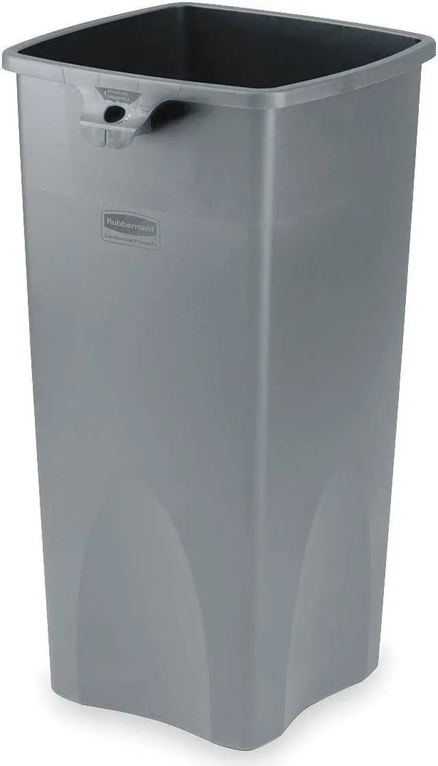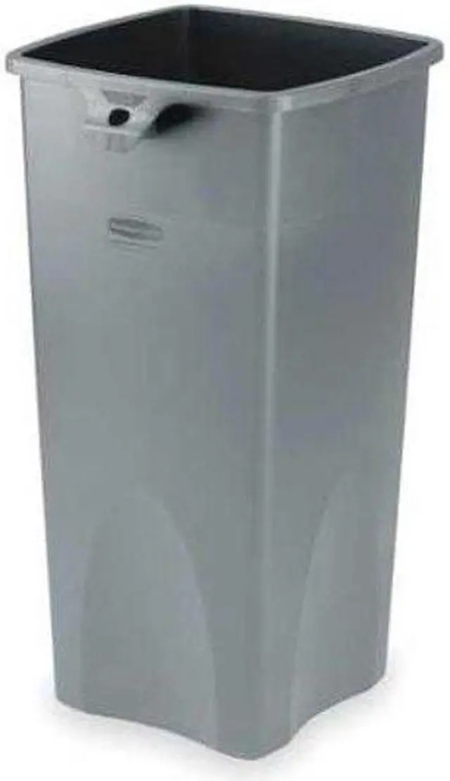 Trash Can, Square, Open, 23 gal, Gray, Height 33 in, Width/Diameter 15 1/2 in, Depth 16 1/2 in, Plastic, Plastic, Smooth, Indoor, Stationary, No Lid, Lift Up, None, Free-Standing. This item has been restricted from sale in the following state (s): []