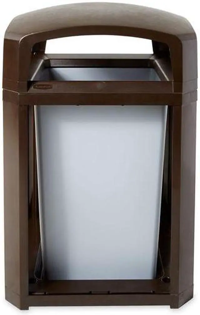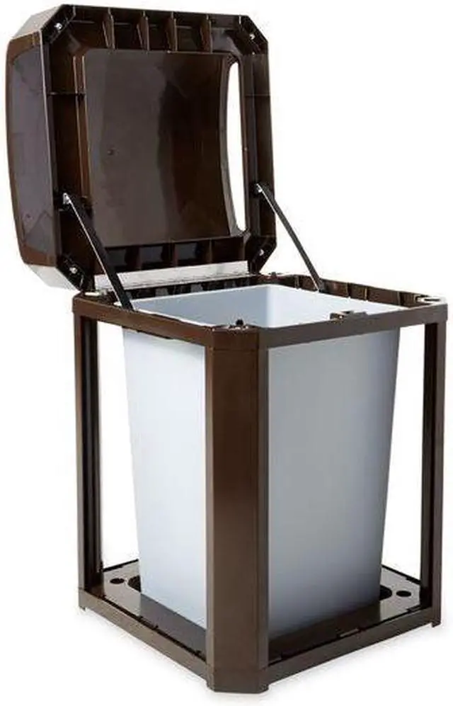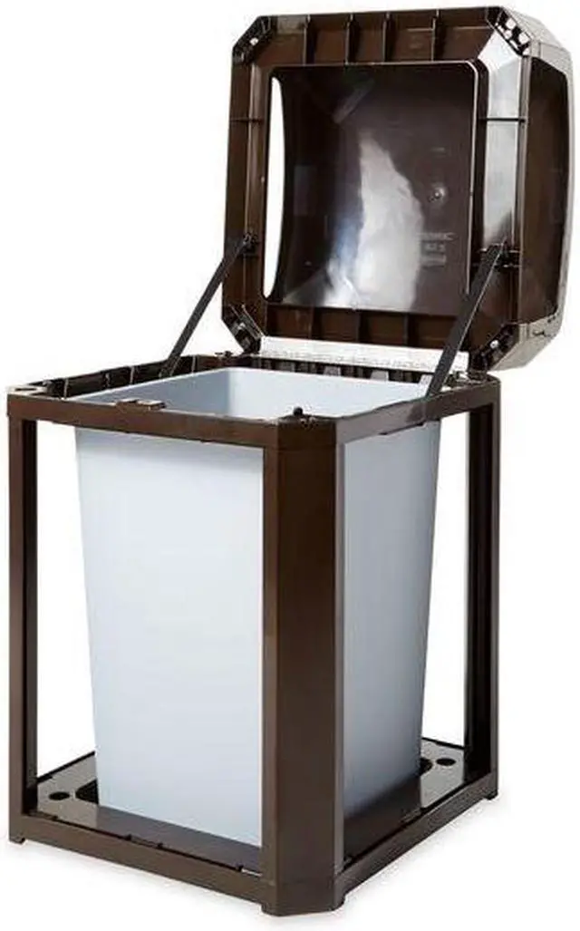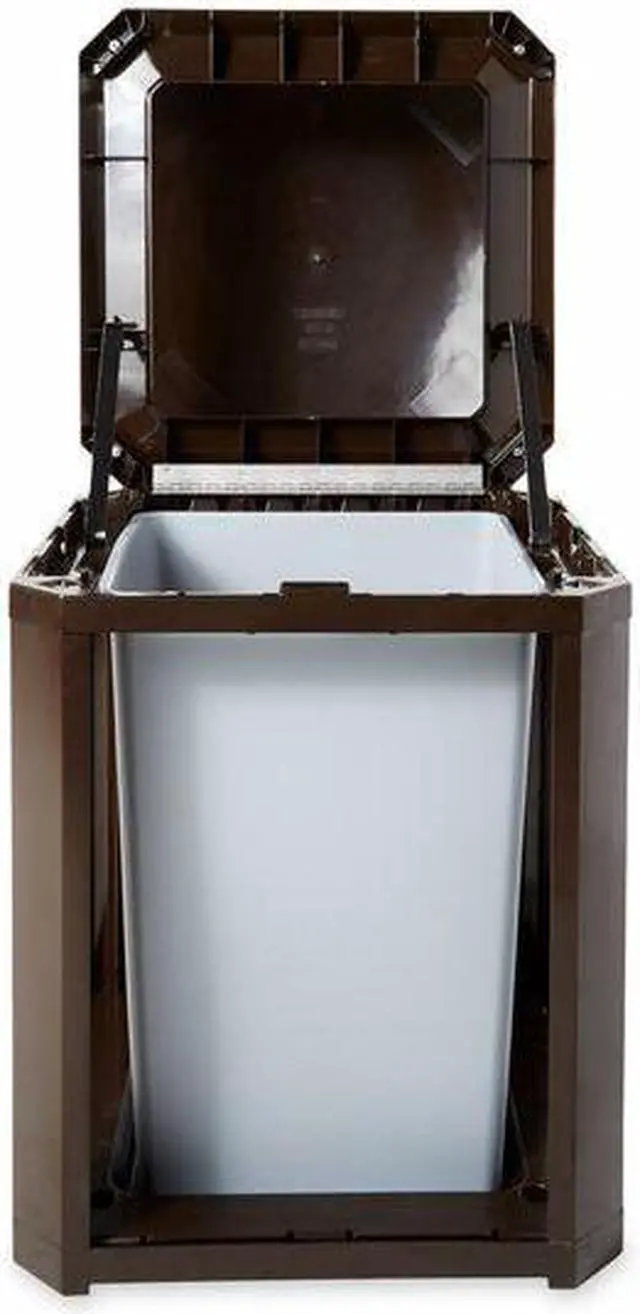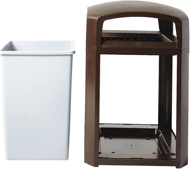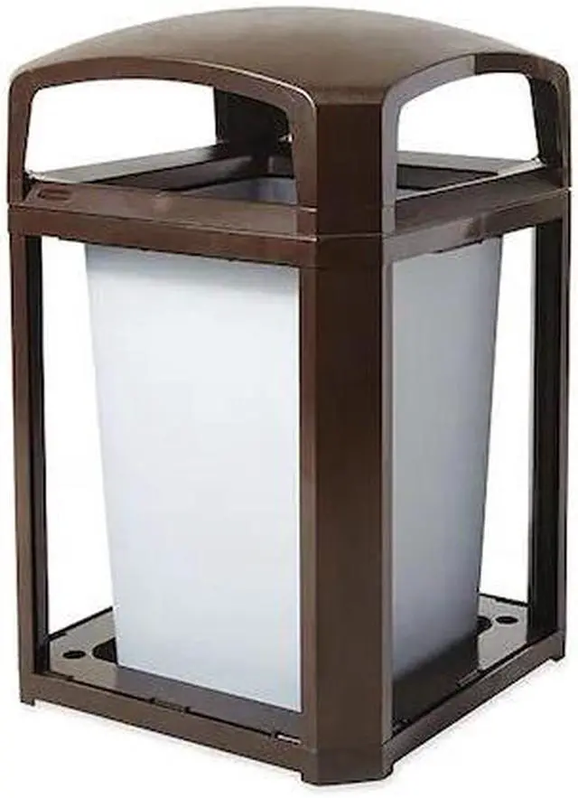 Trash Can, Square, Canopy, 35 gal, Brown, Height 40 in, Width/Diameter 26 in, Depth 26 in, Plastic, Plastic, Indoor/Outdoor, Stationary, Lid Included, Hinged, None, Free-Standing. This item has been restricted from sale in the following state (s): []