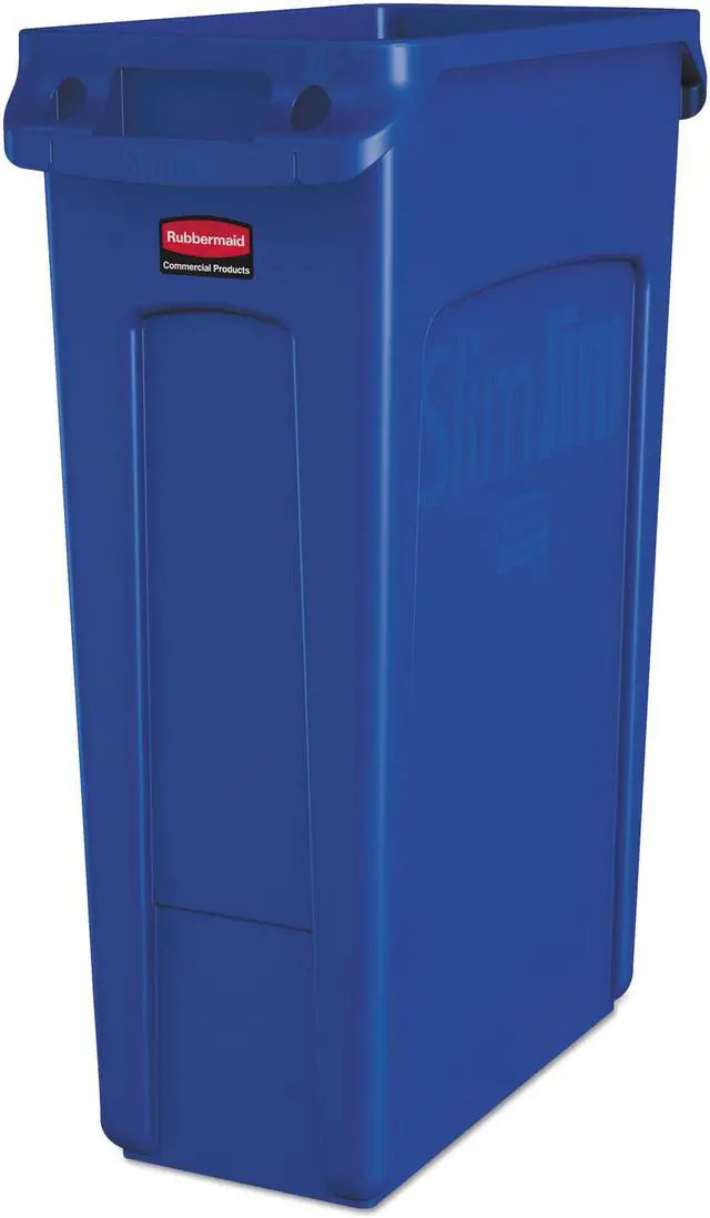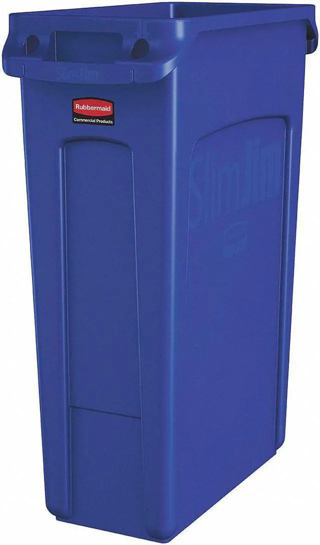 Trash Can, Rectangular, Open, 23 gal, Blue, Height 30 in, Width/Diameter 11 in, Depth 22 in, Plastic, Plastic, Indoor, Stationary, No Lid, Lift Up, None, Free-Standing. This item has been restricted from sale in the following state (s): []