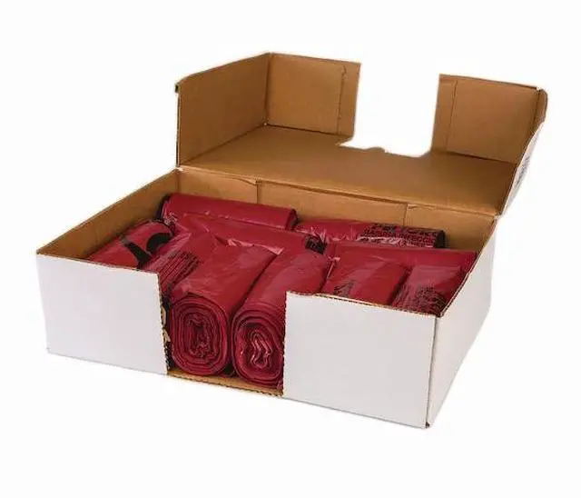 Prime, high-quality resin delivers superior performance. Commercial-grade, linear low-density polyethylene (LLDPE) provides excellent resistance against punctures, splits and tears. These characteristics make LLDPE the best choice for applications where additional strength and stretch are required, especially if the waste to be contained features sharp or jagged edges. Each liner also employs an ultra-strong star-seal bottom. This unique design not only virtually eliminates the potential for messy liquids leakage, but it also allows the liner to conform more easily to the shape of the container while distributing the weight of any contained refuse more evenly. All of which work together to maximize this liners safe carrying capacity while simplifying your waste collection and transport tasks. Packaged as coreless interleaved rolls for easy, one-at-a-time dispensing. Infectious Waste Biohazard Labeling. Application: Can Liner; Capacity Range (Volume) [Min]: 7 gal; Capacity Range (Volume) [Max]: 10 gal; Capacity (Weight): 75 lb.
