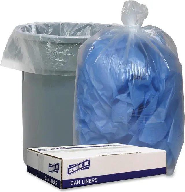 Genuine Joe Clear Low Density 1.4 mil Liners, 33" x 39", 100 Liners