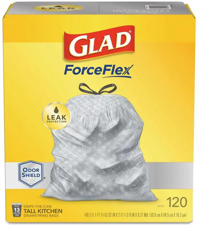 ForceFlex Kitchen Drawstring Trash Bags 13 gal 23.75" x 25.4" White 120/Box 79158