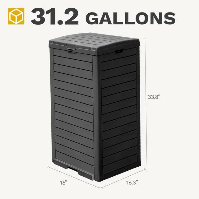 • 38 Gal Capacity, No-Hassle Storage: Measuring 16"L x 16.3"W x 33.8"H, this DWVO trash bin fits 33-50 gallon trash bags, ideal for efficiently managing waste both indoors and outdoors; Upgrade with an internal PVC layer to minimize the risk of bag tears