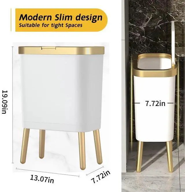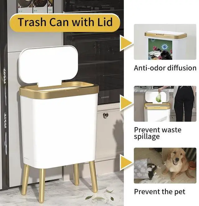 This Waste container is easy to use - simply press the button on the lid to open and close. trash can with lid, it can prevent pets from overturning the trash can, protect privacy and prevent odors from spreading.