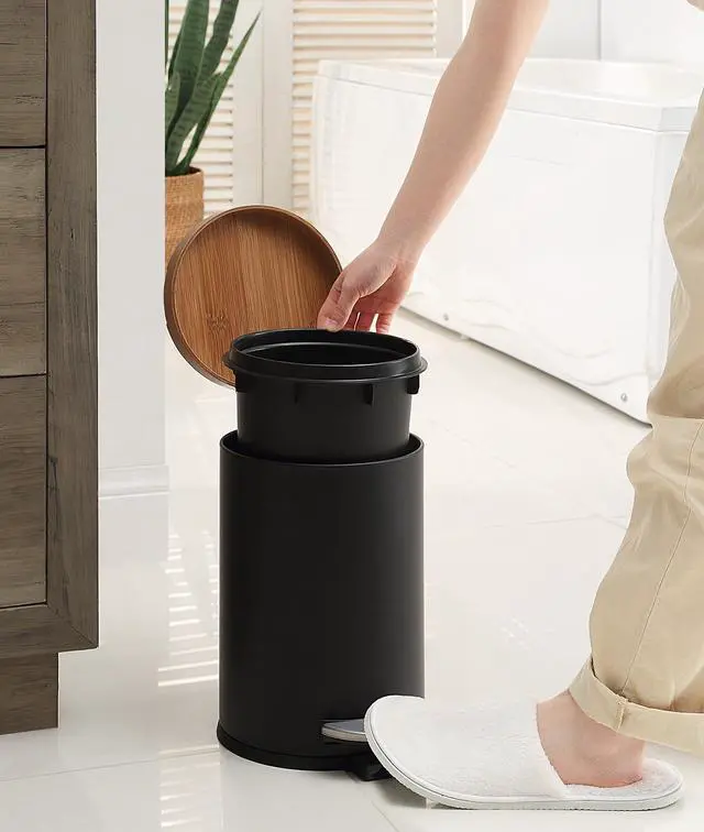 Round Sized perfectly for smaller spaces, these Square waste cans from SunnyPoint fit perfectly in bathroom cupboards, unused corners or next to the toilet. The interior liner bucket has handles for easy removal and emptying. Open the lid hands-free with the step design. The durable material is easy to clean. Most important is the Slow Close Lid Can
