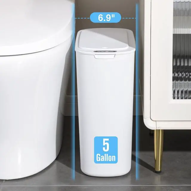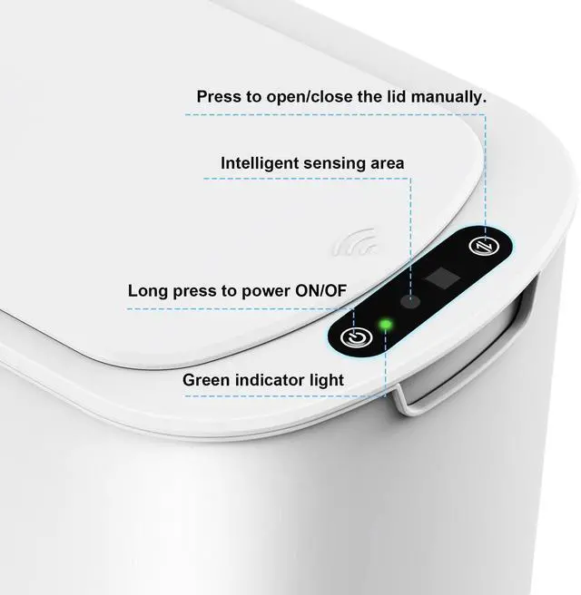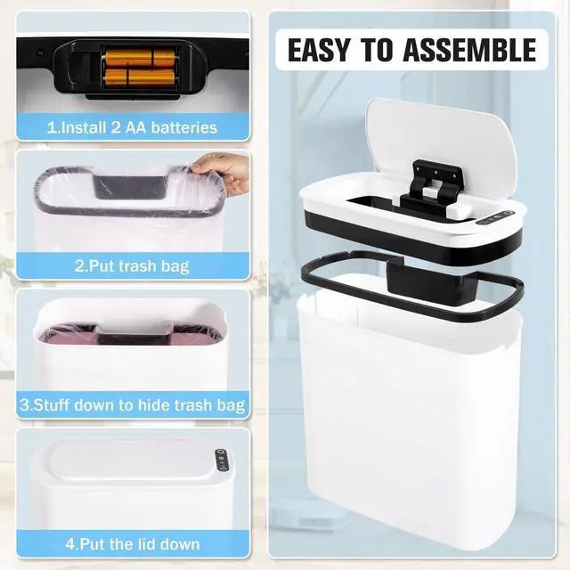 Make daily trash duty easy and clean with Cesun 5 Gallon Trash Can with Lid ! Whether you put it next to your bathroom toilet, office workstation, living room or that narrow spot in the bedroom, this automatic bathroom trash can fits your space. Thanks to its advanced infrared technology, just wave your hand near it, then the lid pops open, keeping your hands clean and touch-free. It is a perfect gift for busy new parents, office workers, mobility-challenged people or anyone who wants things easier. The office trash can is quite easy to assembly. All it needs is 2 AA batteries (we dont include them, but theyre easy to find) and ready to use. We know small spaces are precious, so its slim shape right into compact spots without taking too much space on room. Unlike smaller touchless trash can that can only hold a little trash, this bathroom garbage can holds days of trash, so you dont have to run to the curb as often. Theres a little removable ring inside the bedroom trash can that keeps garbage bags from slipping or hanging over, so everything looks neat. This litter zero trash can comes with a polished plastic finish and you can wipe it clean in no time. The bathroom trash with lid keep bad smells from getting out, so your space stays fresh and nice. This isnt just a trashcanits a little upgrade that makes daily life nicer, cleaner, and way less of a hassle.