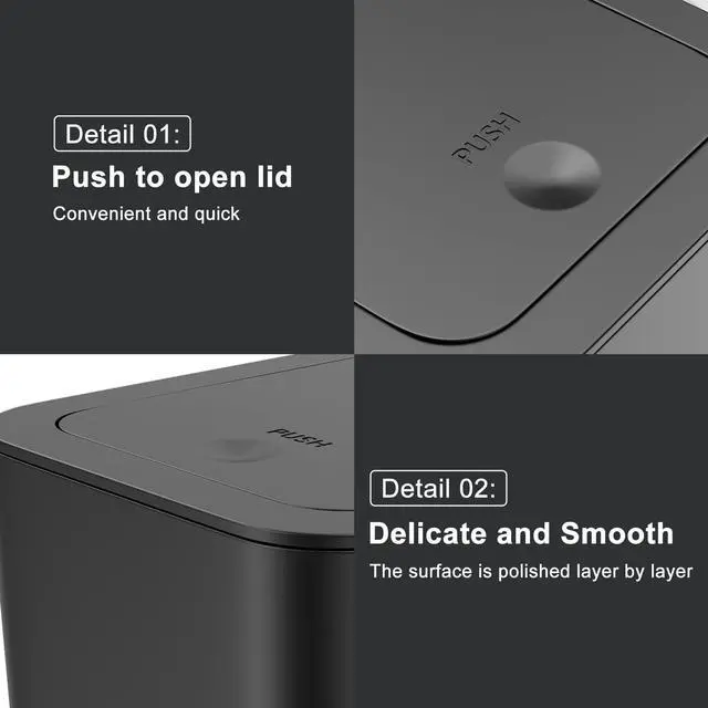 This small trash can is the great choice for any home or office. Whether you need a small kitchen trash can, a slim bathroom trash can, or a small trash can, this small trash can kitchen is sure to meet your needs. It has a secure lid to keep odors sealed in and a sleek, modern design to add a touch of style to any room. this small trash can with lid is the great way to keep your space tidy and organized, this small kitchen trash can is crafted from high-quality PP material makes small desk trash can with lid wear-resistant. Our small trash can with lid for bathroom will not easily age or become brittle which gives you long-term usage. This small trash can is suitable for indoor and outdoor use, as well as offices and kitchens. It is lightweight and portable, making it easy to move and store. The deep interior allows for plenty of storage space without taking up too much room.