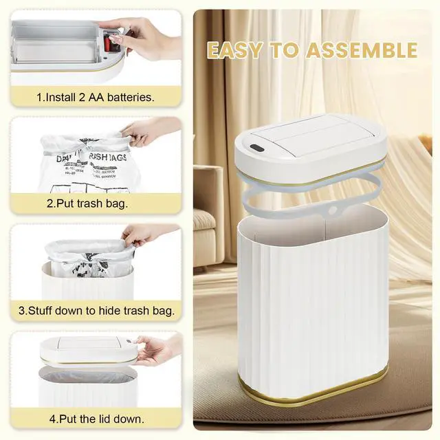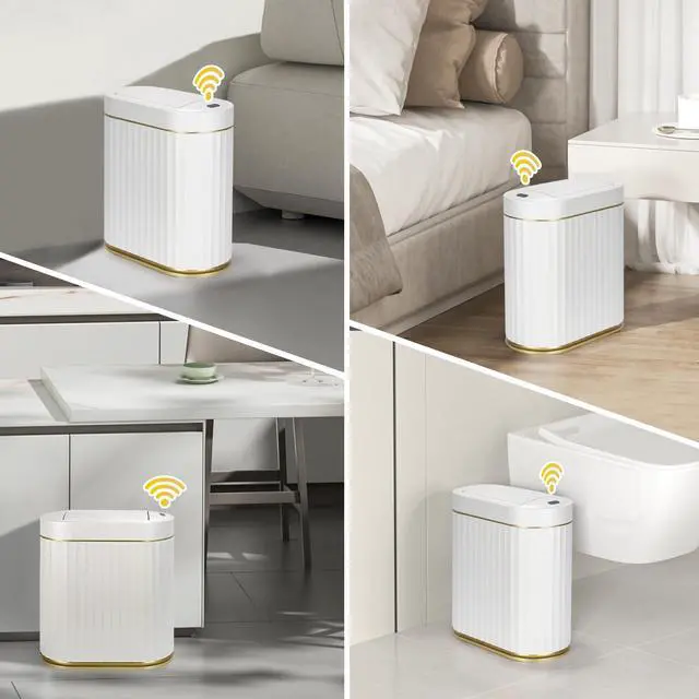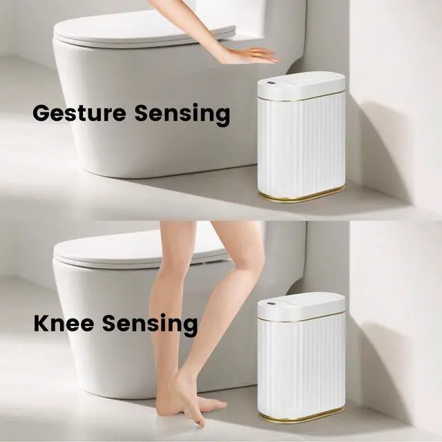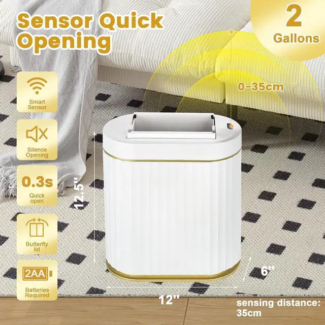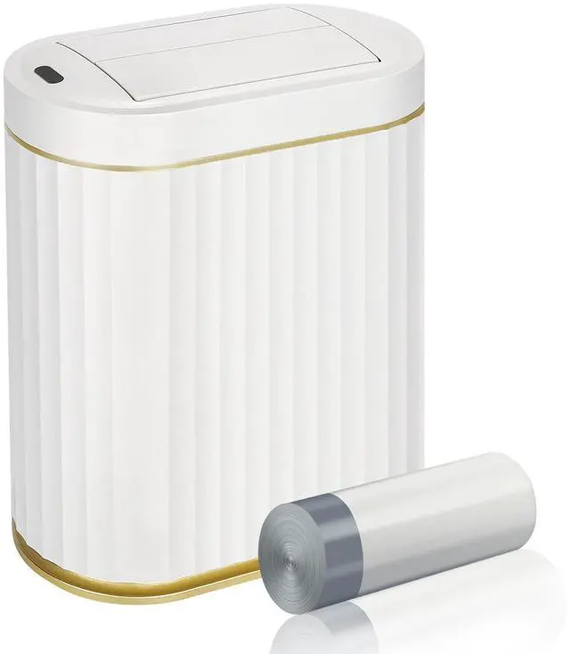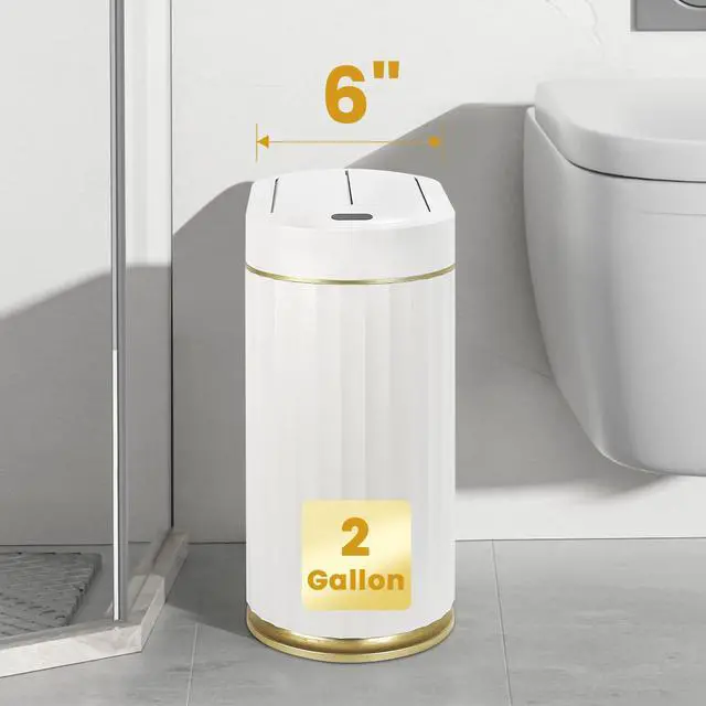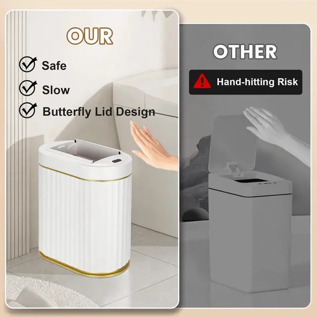 ELPHECO Bathroom Trash Can with Lid Butterfly, Motion Sensor Trash Can Bathroom Decor Automatic Garbage Can Wastebasket Bathroom Accessories, Kitchen, Living Room, Office, White Gold