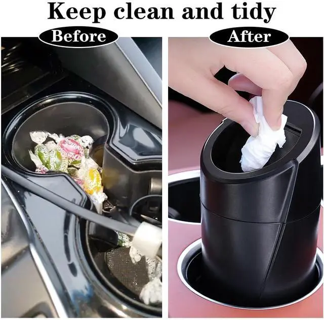 Convenient and Practical The Car Garbage Can is designed with a flip lid, allowing you to easily open it with a light push to dispose of trash or items. The lid closes automatically, effectively blocking odors and keeping your car interior clean and fresh. With 40 disposable trash bags included, it's easy to keep the trash can clean and tidy at all times.