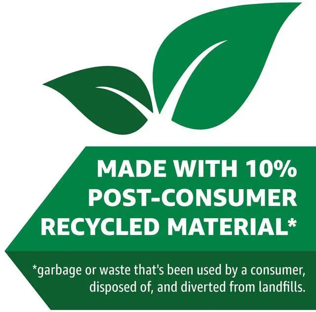• Made with 10% post-consumer recycled material; from garbage or waste that's been used by a consumer, disposed of, and diverted from landfills