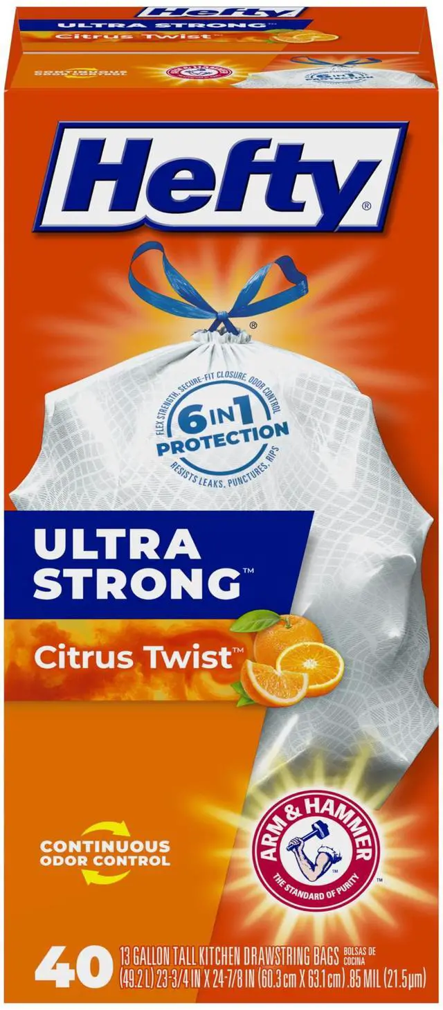 Heftys strongest tall kitchen garbage bags deliver toughness you can trust to help contain the mess of a busy kitchen