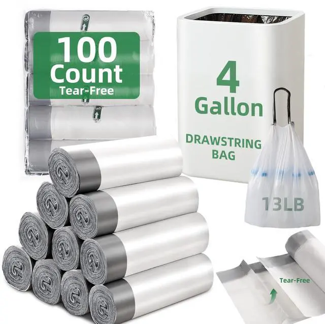 Drawstring Handle: These drawstring trash bags eliminate direct contact with waste - simply cinch tight and carry. Your hands stay clean while maintaining a tidy home or office.