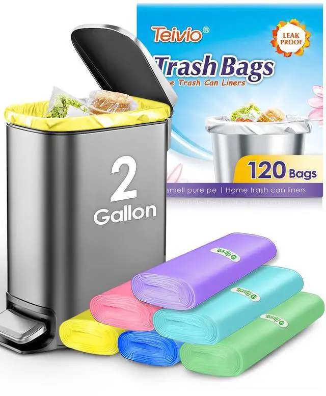 Small Trash Bags 2 Gallon 120 Count Colorful Small Garbage Bags, Trash Can Liners for Bathroom Home Office Kitchen Bedroom, fit 5-10 Liter, 1,1.2,1.6,2,2.6,3 Gal,Multicolor