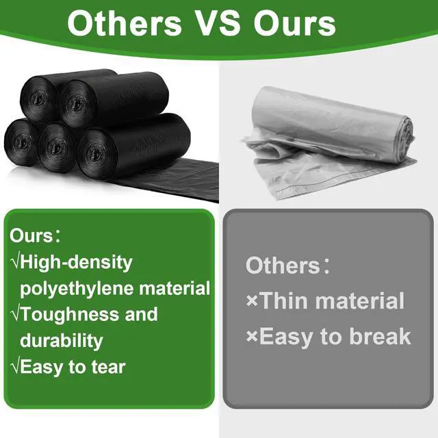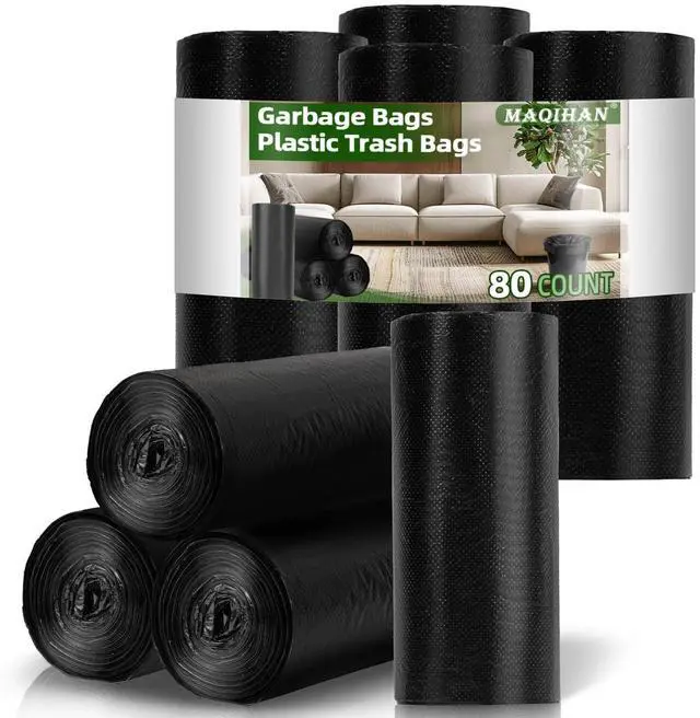 Black Trash Bags: Black garbage bags are made of high-density polyethylene, which is highly resilient and durable enough to withstand a certain weight of garbage. The color of black garbage bags makes the contents less visible, helping to protect privacy and avoid undue attention to the garbage
