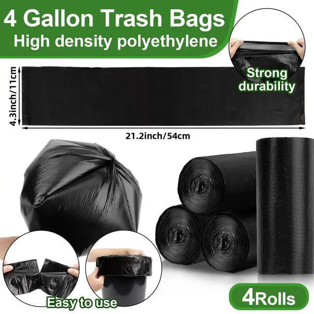 Multiple Usage: 4 Gallon trash bag can be widely used in living room, bedroom, office, toilet, kitchen, no matter it's household garbage or food waste, all can be, it's recommended to put small trash can bags in every area of your home, so it's very convenient, and there's a place to throw it when you have garbage to throw with your hand