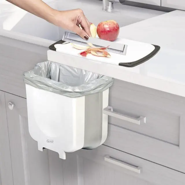 Made for any room in the house and beyond! This Roomate waste bin is constructed of sturdy plastic, making it both versatile and portable. The included over the cabinet door hook allows you to hang this expandable bin from up to a 0.97 inch thick cabinet door. Use it next to the sink to collect veggie scraps, set it on the table during craft projects, take it with you on picnics or camping trips, or leave it in your vehicle as the perfect car trash bin.