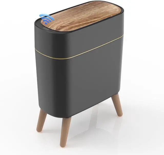 Automatic Trash Can, 2.6 Gallon/10L Bathroom Trash Can with Lid - Wood Grain Lid and Legs, Touchless Waterproof Garbage Bin for Bedroom, Bathroom, Office, Living Room