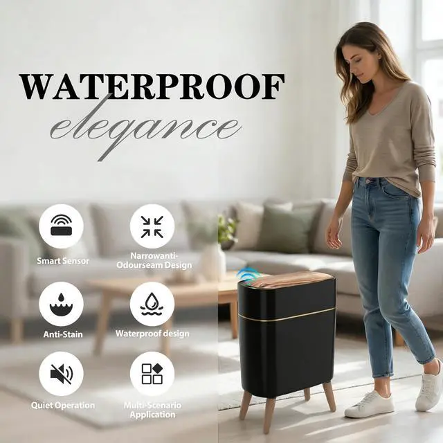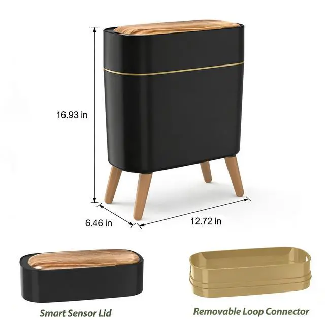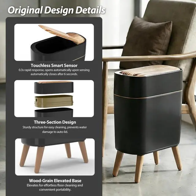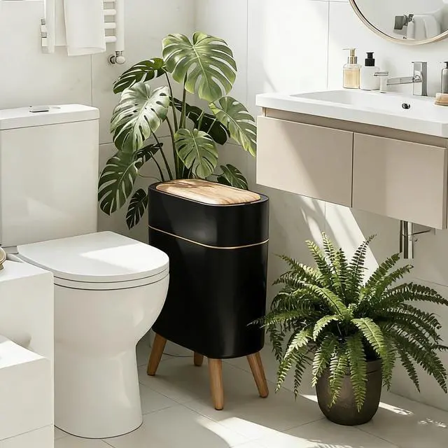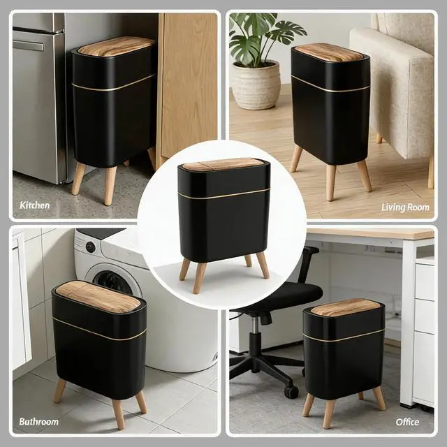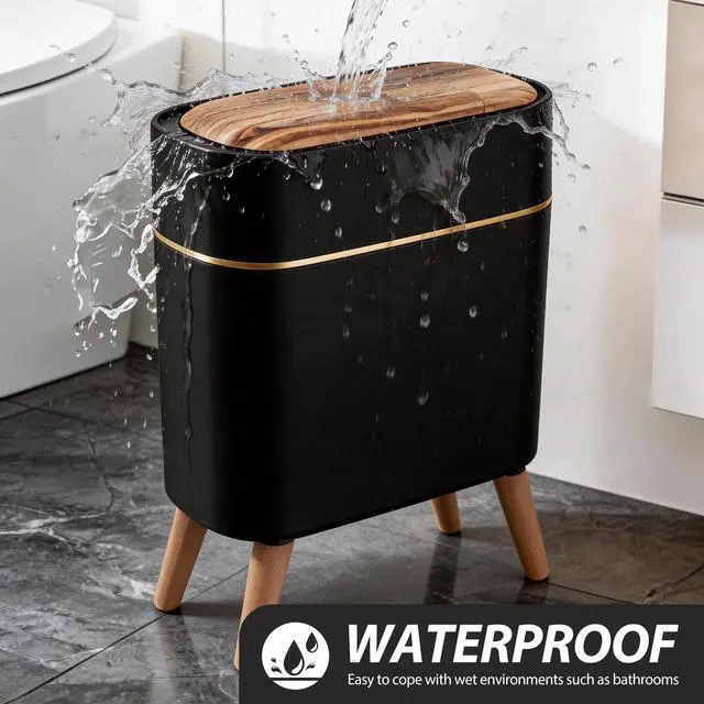 Wood Grain Finish Natural wood grain texture complements any modern decor. Perfect for bathroom trash can or kitchen trash can adds warmth while staying clean and stylish. Whether you need a trash can kitchen companion or a bathroom trash can with lid, this garbage can fits right in