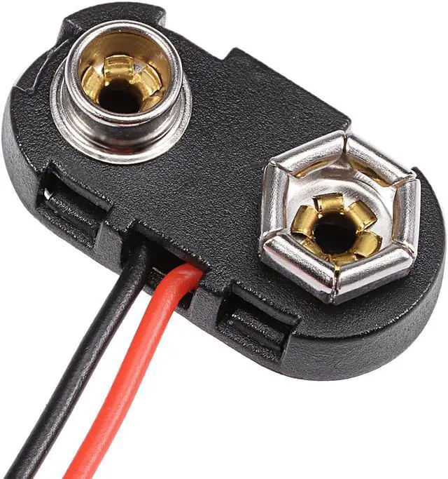 9V battery clip connector, T-type plastic shell, 2 wire connector.