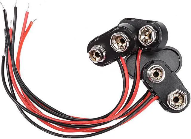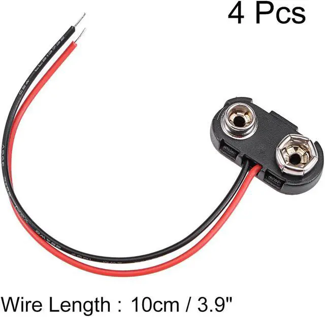 10cm stripped and tinned leads, 1 red and 1 black for easy identification and soldering terminal connector for 9-volt battery or for DIY projects.