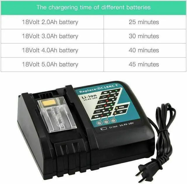DC18RC Replacement Charger for Makita 14.4V-18V LXT Lithium-ion Battery Compatible with Makita BL1815 BL1830 BL1840 BL1845 BL1850 BL1860 Batteries Charger