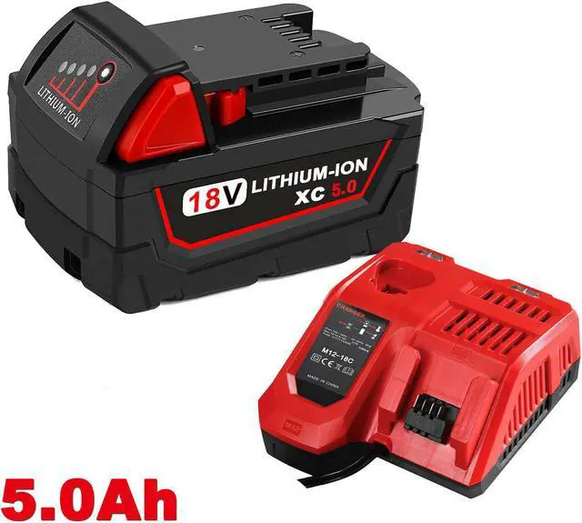 5.0Ah For Milwaukee M18 48-11-1850 Lithium XC Extended Capacity Battery and M12-18C Charger