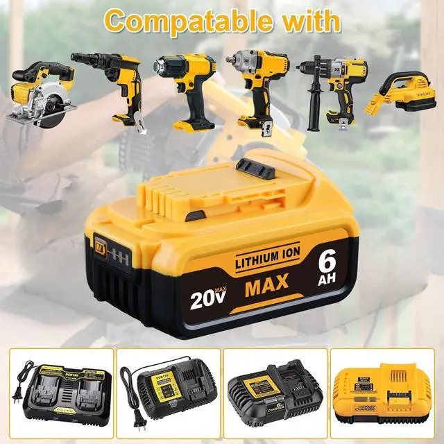 2x 20V Li-Ion 6000mAH battery for Dewalt DCB206