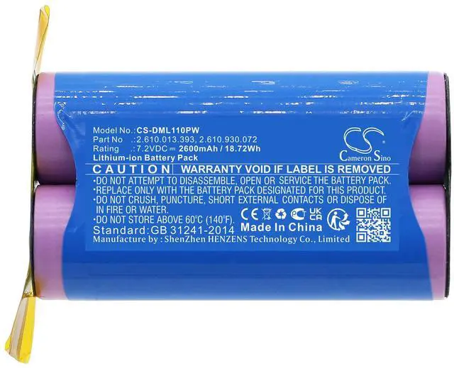 930.072 Capacity: 7.2V 2600mAh / 18.72W h