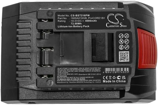 Battery for Bosch GBH 18V-34 CF GBH 18V-36 C GBH 18V-45 C GCM 18V-216 GCM Compatible with the following devices GBH 18V-34 CF, GBH 18V-36 C, GBH 18V-45 C, GCM 18V-216, GCM 18V-305 GDC, GDS 18V, GDS 18V-1000, GDS 18V-1050 H, GKM 18V-Li, GKS 18V-57 (Solo) Cordless Circ, GKS 18V-68 C, GKS 18V-68 GC, GKT 18V-52 GC, GSA 18V-LI (solo) Cordless Sab, GSA 18V-LI C, GSB 18V-150 C, GSR 18V-6, GSR18V110C, GST 18V-LI S, GTS 18V-216, GWS18V-15C, GWX 18V-15 C Compatible with Battery Part Numbers 1600A016GB, ProCORE18V