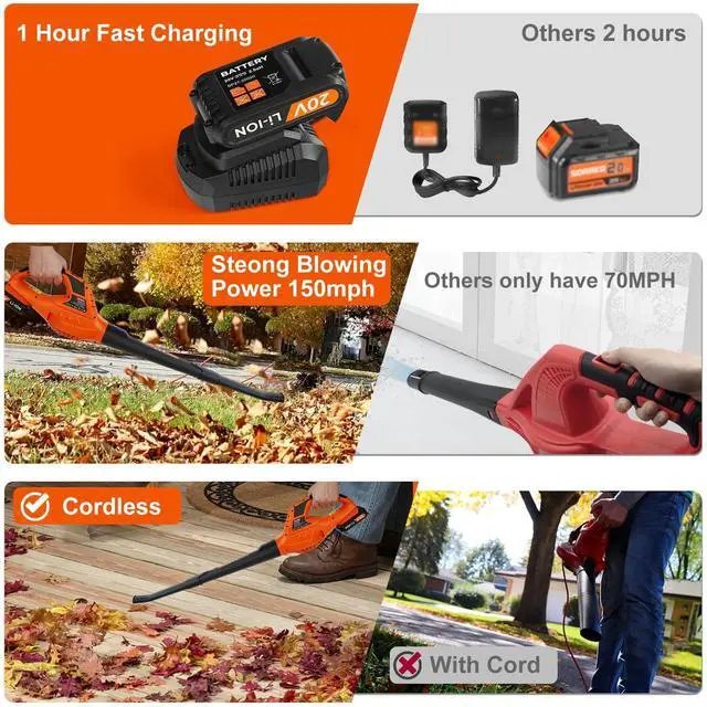 | Included Components | 1 x Blow tube & Extension tube, 1 x Leaf blower body, 2 x 21V 2000mAh battery, Charger, User Manual |