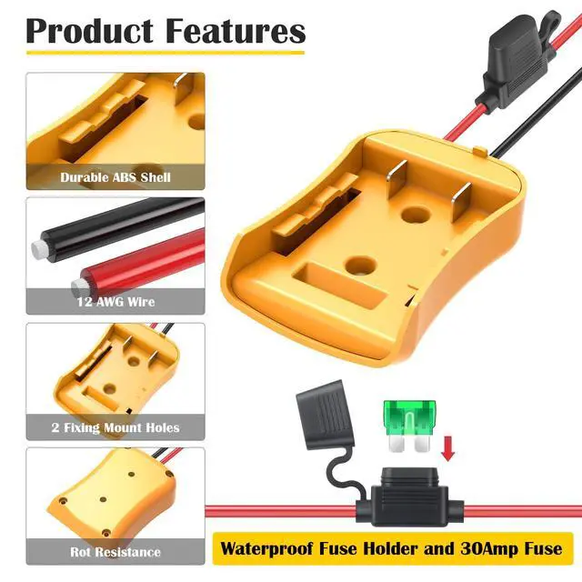 Has some security design, equipped with 30Amp fuse protect the battery devices from overpower damage, fuse holder rubber cap fits on tightly to protect blade fuse inside, adapter installed with 12 gauge wire. In addition we equipped 2 wiring terminals, convenient for you to connect the power cord of the device with the power cord of the adapter faster and better