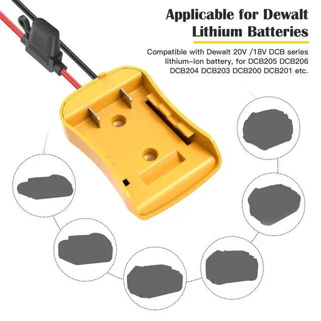 Battery adapter Compatible with Dewalt 20V /18V DCB series Li-ion batteries, work with for DCB205 DCB206 DCB204 DCB203 DCB200 DCB201 etc. Our power converter is well-made, snug fit your battery, install and lock your battery easily
