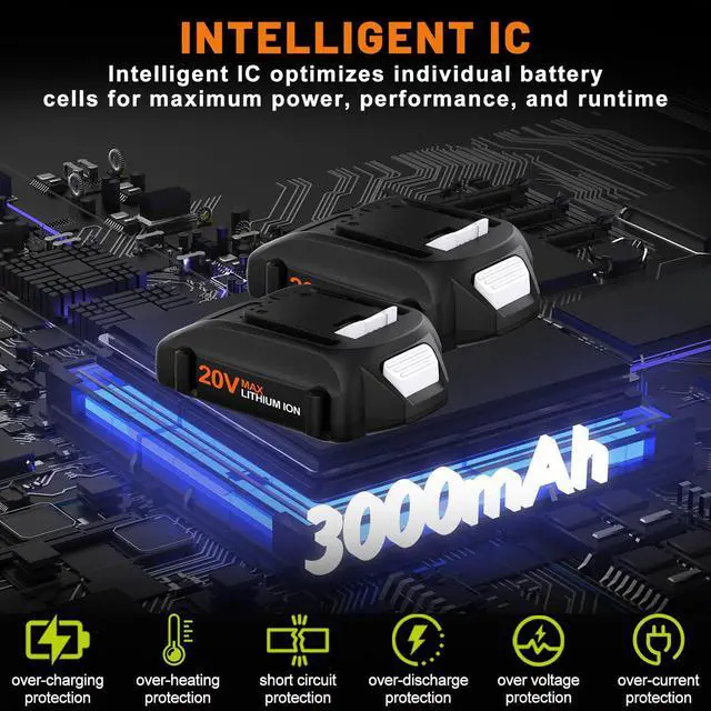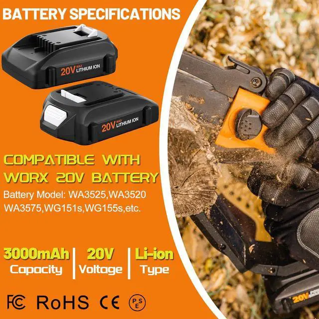 Compatible with 20V Charger: WA3742, WA3875, WA3732/50023391, WA3847, WA3835, WA3868, WA3881, WA3884, WA3770.
