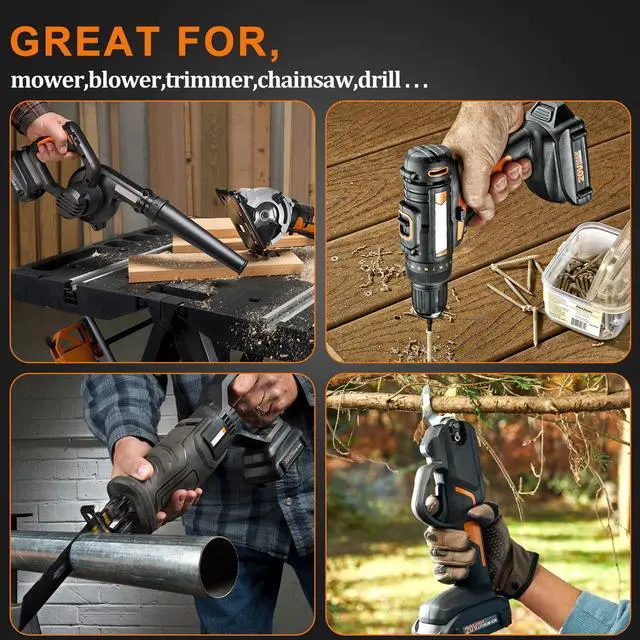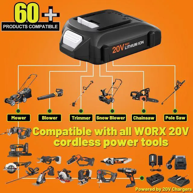 Compatible with 20V Tools: Trimmers & Edgers, Chainsaws & Pole Saws, Blowers, Lawn Mower.