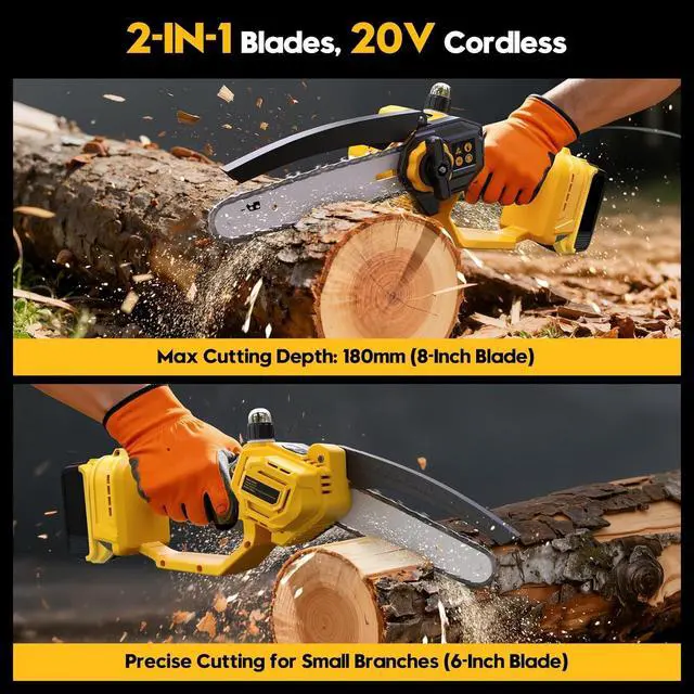 Compatible with DEWALT Batteries: Extend the convenience with our chainsaws compatibility with DEWALT 20V batteries (including models DCB200, DCB201, DCB203, DCB204, DCB205, DCB206, DCB207, DCB208, DCB210, DCB230, DCB240, etc). Utilize your existing DEWALT batteries to power up and tackle any task without the need for additional purchases. NOTE: Battery and charger are not included!