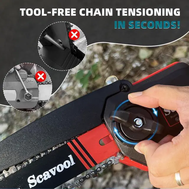 [Portable and One Hand Friendly] Lightweight, with weight only 3.3lbs which is about 20% the weight of a bulky larger gas chainsaw, operate it with one hand comfortably, convenient for the elderly, women and all family members. Scavool portable chain saw is lightweight and easier to handle. Make it happen, anytime, anywhere.